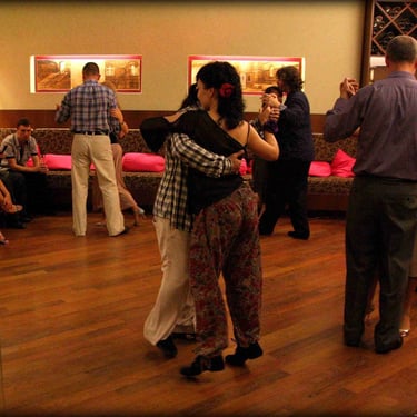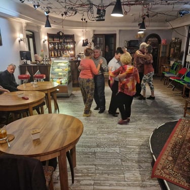 2. Po kilkunastu tygodniach osiągasz nieformalny stopień "średnio zaawansowanego" i być może zechcesz przychodzić na regularne, kameralne lokalne milongi. Zwykle co tydzień odbywają się spotkania w kawiarni, gdzie cały wieczór słychać tango argentyńskie. Niektórzy tańczą, inni rozmawiają, są i tacy, którzy delektują się muzyką. W tle kawa, herbata, lampka wina... Być może to ciekawa alternatywa dla kolejnego wieczora w kapciach przed TV ;)